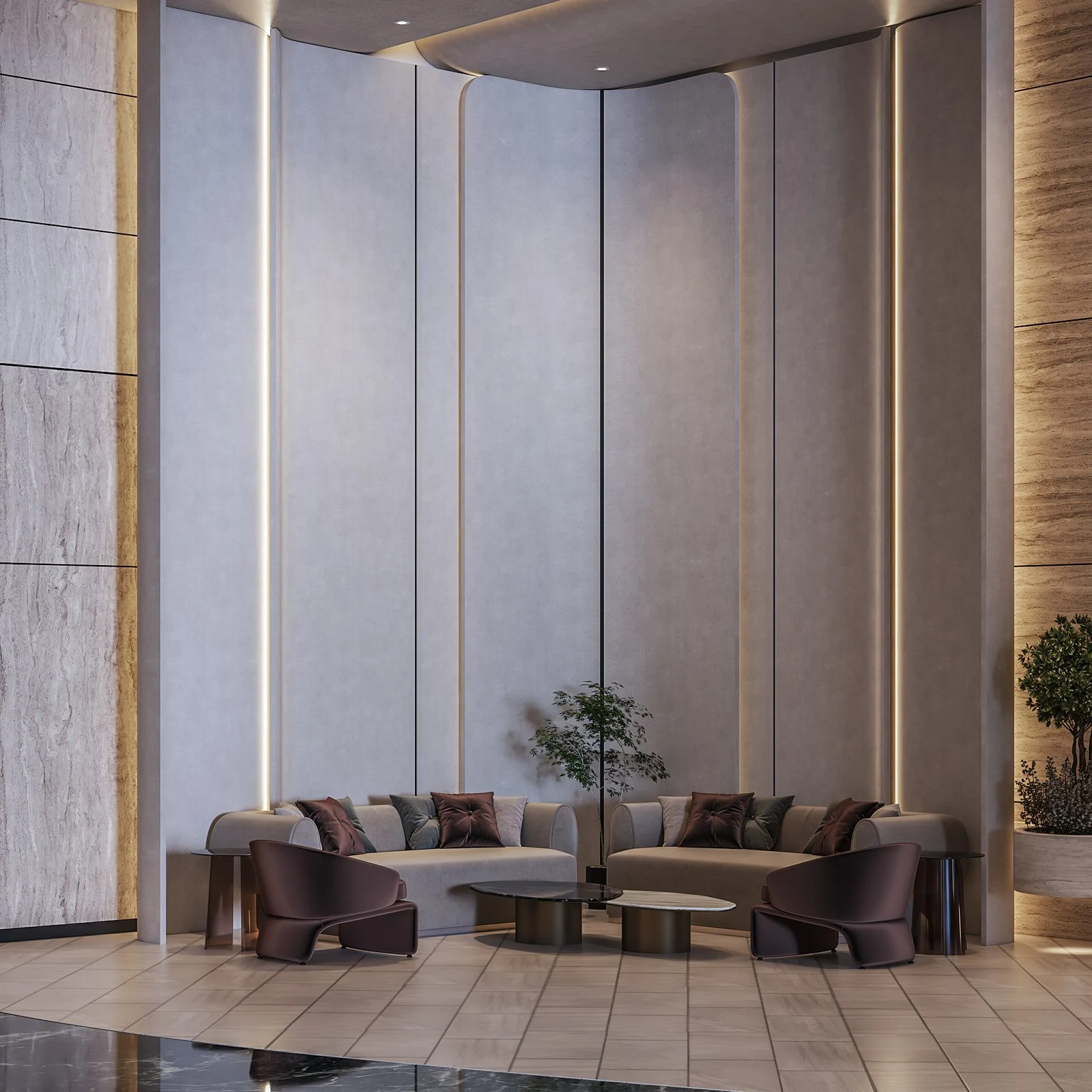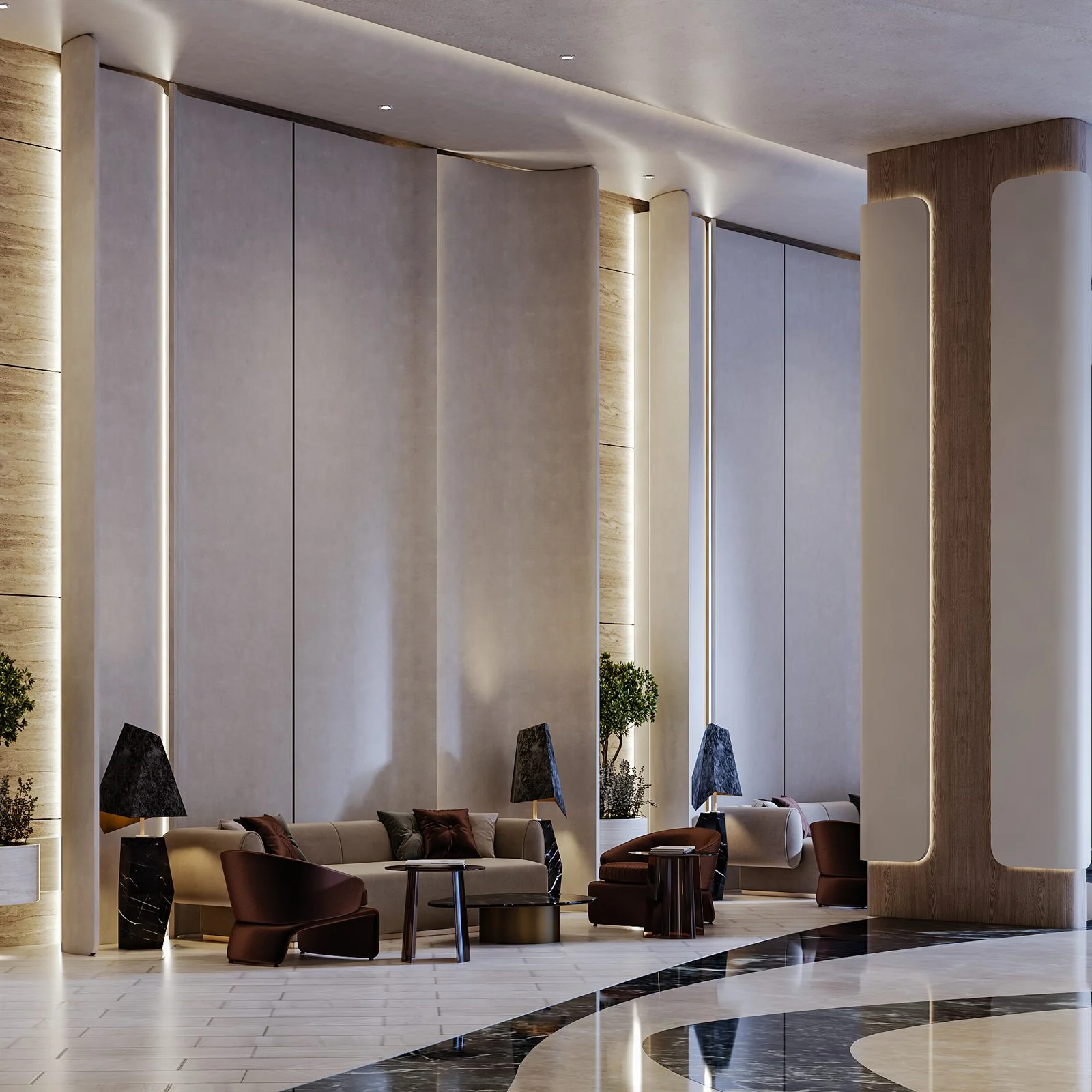A progressive space shaped by organic geometry and seamless waves. Light, texture, and form blend to create a calm yet dynamic sense of motion — a modern interpretation of harmony and refined design.